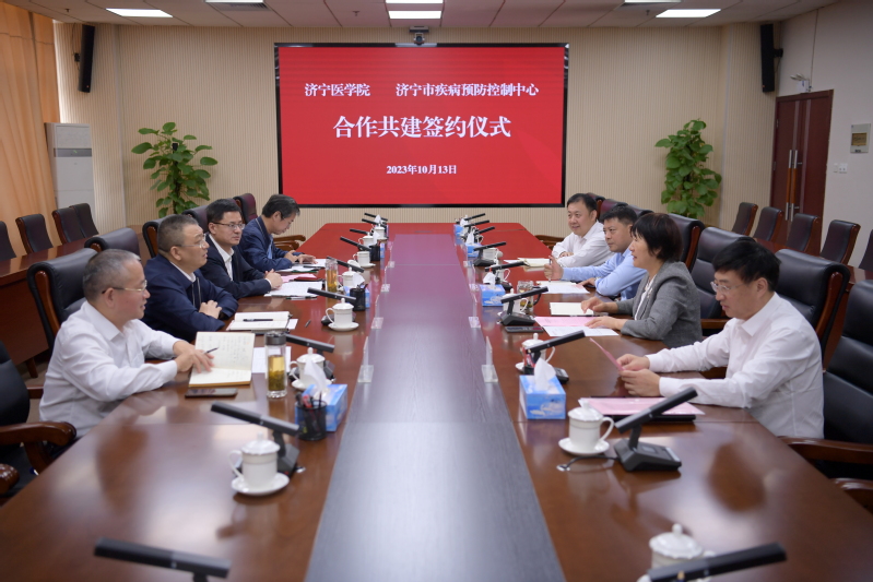 10月13日上午,我校与济宁市疾病预防控制中心共建医教研防融合中心签约仪式在太白湖校区举行。学校党委委员、副院长王慧云,济宁市卫生健康委员会党组副书记、济宁市疾病预防控制中心党委书记仲曙光,济宁市疾病预防控制中心党委副书记、主任梁玉民出席签约仪式。仪式由公共卫生学院院长林立主持。