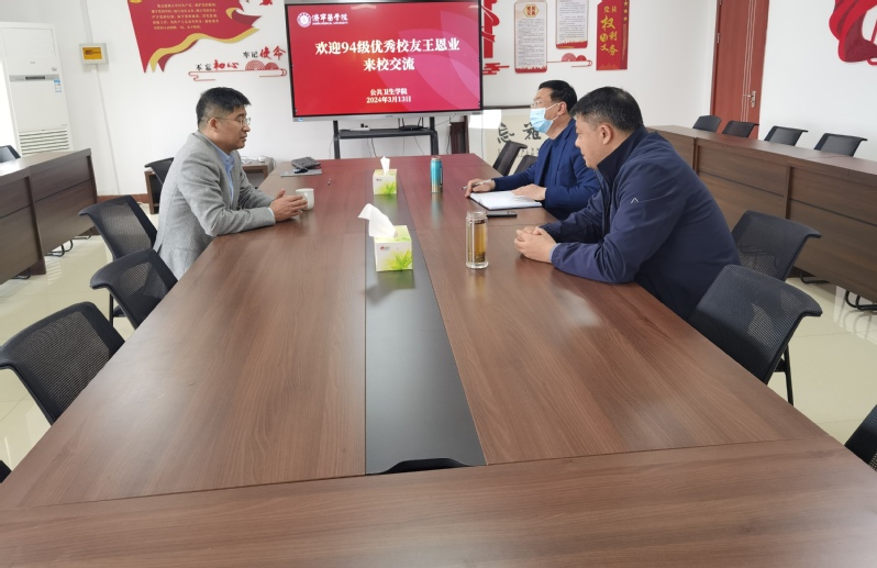 3月13日,我院九九届优秀校友王恩业来访,党总支书记卫明武、院长林立予以接洽。