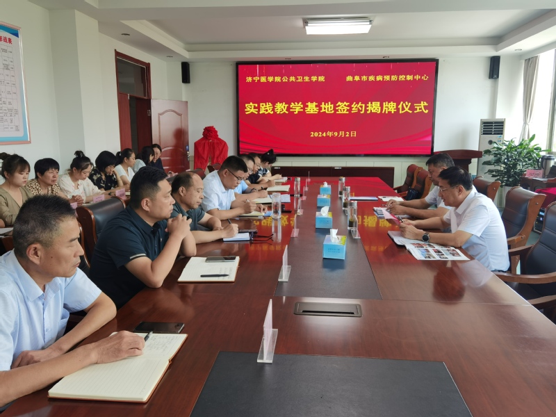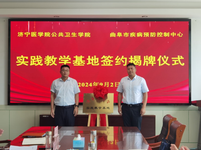 9月2日,济宁医学院实践教学基地签约揭牌仪式在曲阜市疾病预防控制中心举行。公共卫生学院党总支书记卫明武、院长林立,曲阜市疾控中心党总支书记兰玉杰、主任胡翔出席活动。