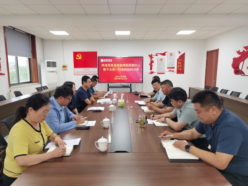 6月19日上午,莒南县疾病预防控制中心主任鲁宁一行来院进行交流访问,学院党总支书记卫明武、院长林立等进行接洽。