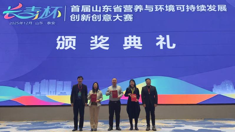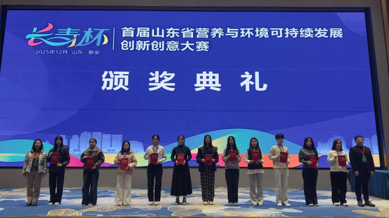 12月20日,“泰山论健:营养·环境与可持续发展创新大会暨长青杯首届山东省营养与环境可持续发展创新创意大赛”在泰安市举行。本次大会由山东环境科学学会、山东省食品科学技术学会、山东省老年医学学会联合主办。在颁奖环节,我院师生的8项参赛作品获得表彰。