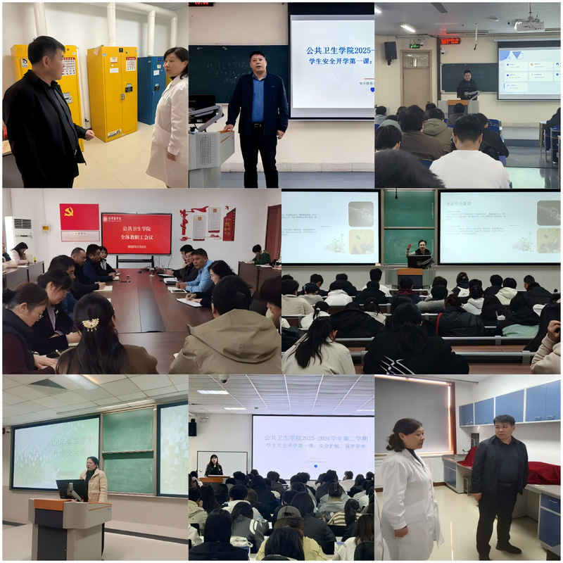 3月6日,学院召开新学期全体教职工会议暨安全开学第一课部署会。会上,公共卫生学院党总支书记卫明武、院长林立就安全开学工作专项部署,要求全体师生深入学习习近平总书记关于安全生产和学校安全工作的重要论述,落实安全政策法规,以典型事故案例以案说法;围绕学生安全、实验室安全、消防安全、心理健康等重点领域提出具体要求,部署各班级开展安全教育主题班会,健全安全隐患排查整治长效机制。当日上午10时,公共卫生学院副院长李印龙带队对学院实验教学中心开展开学前安全专项检查。检查小组聚焦仪器设备运行、水电线路、消防设施、危险化学品管理、实验废弃物处置及安全制度落实等核心环节,全面排查隐患、核对安全台账,压实实验室安全管理责任,为新学期实验教学顺利开展筑牢安全屏障。